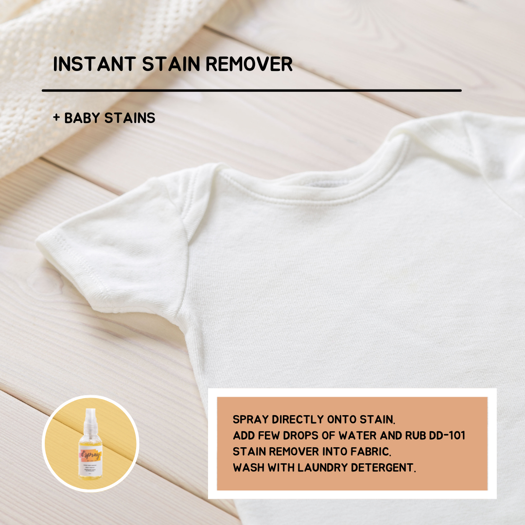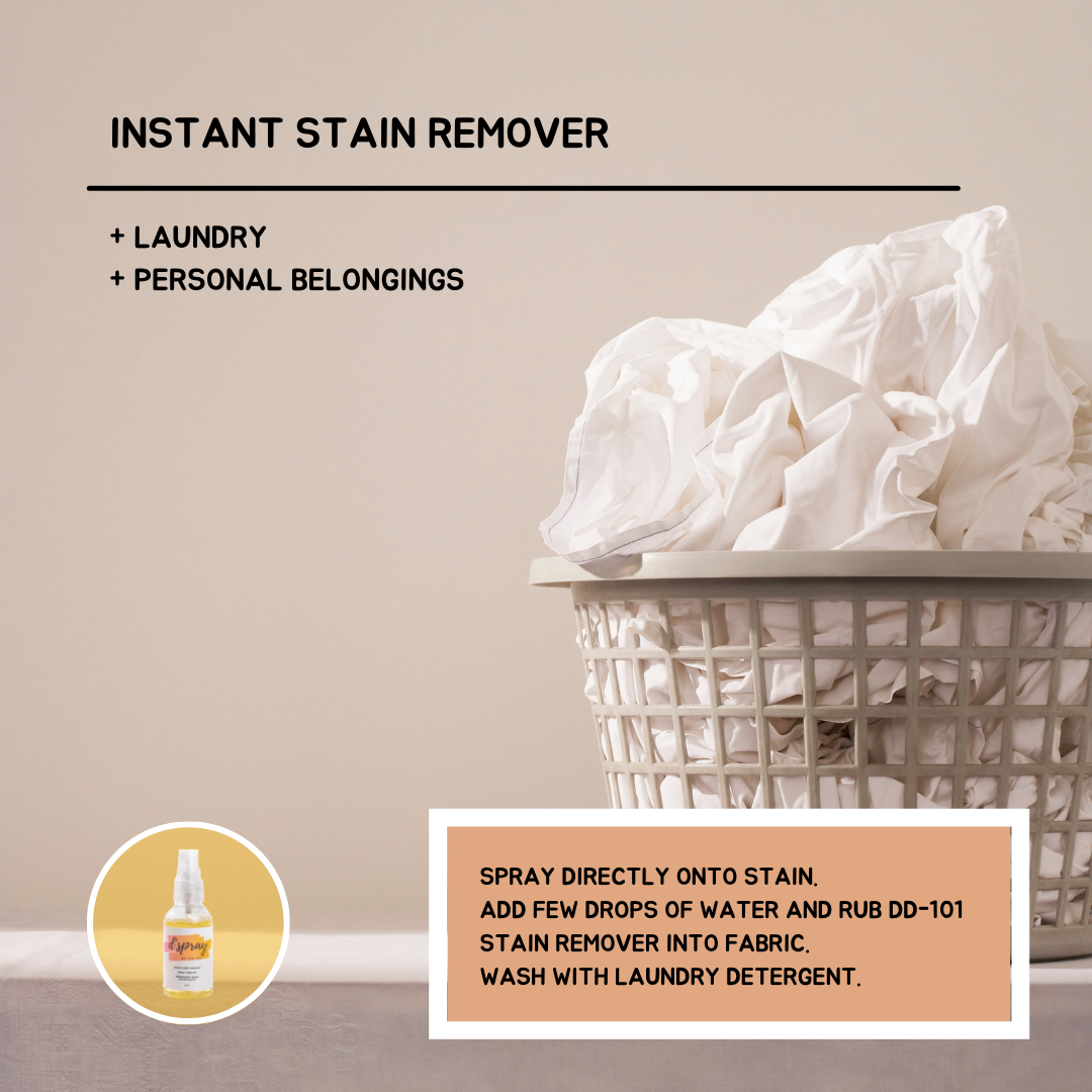 - Add few drops of water and rub DD-101 Stain Remover into Fabric. (Friction helps! You should be able to see stains lighten after rubbing)